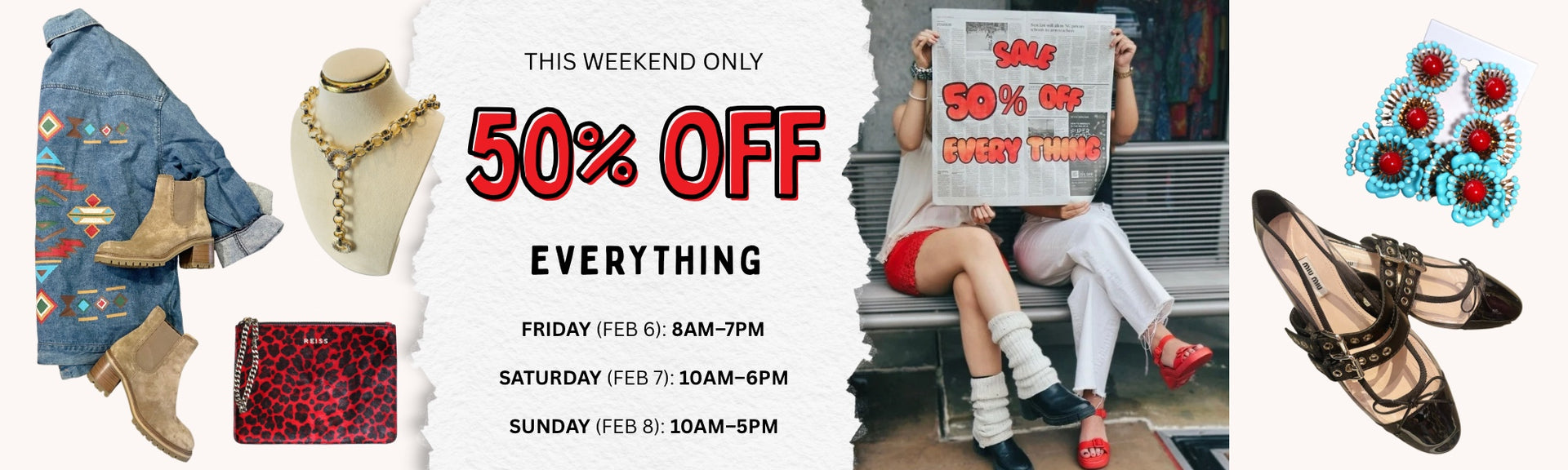 Semi Annual Sale: 50% off storewide 🎉 Feb 6 - Feb 8· In-store only